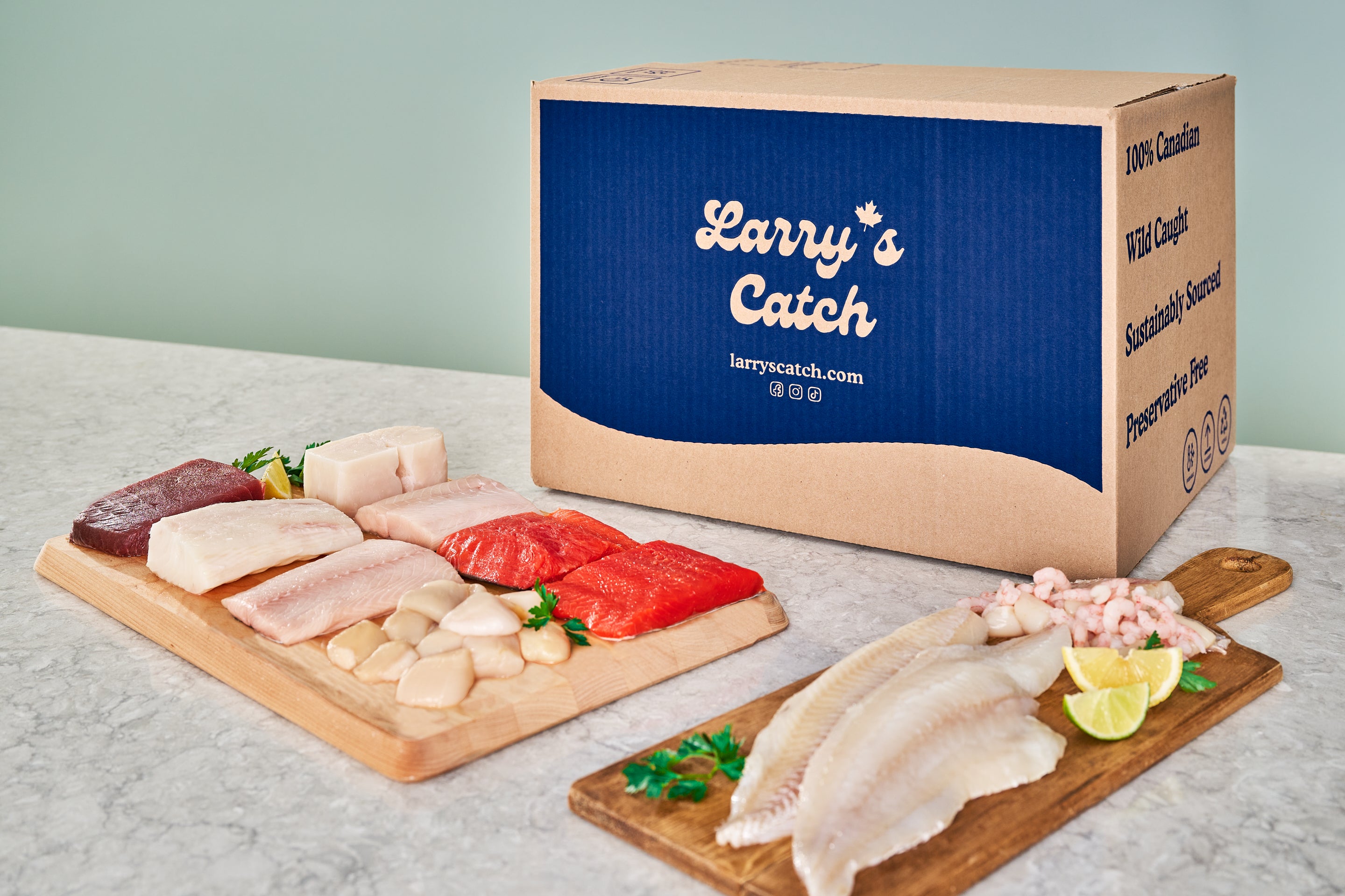 Get wild-caught Canadian seafood delivered right to your Nova Scotia home. Larry's Catch ships premium fish caught in the waters off your coast—Atlantic lobster, scallops, haddock, and more—straight to your door.